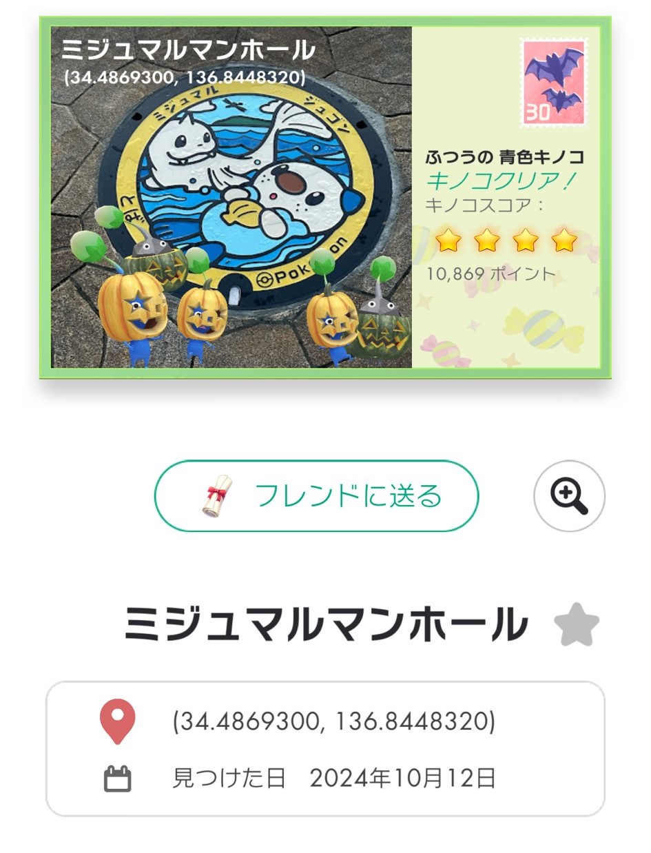 | なし | なし | 不明(yupさんしてないかも)→ アプリ調べたらあり!ごめん!pokekyonさんが見つけた日:令和6年7月30日→令和7年8月3日のyup隊員による探知機は不明 |